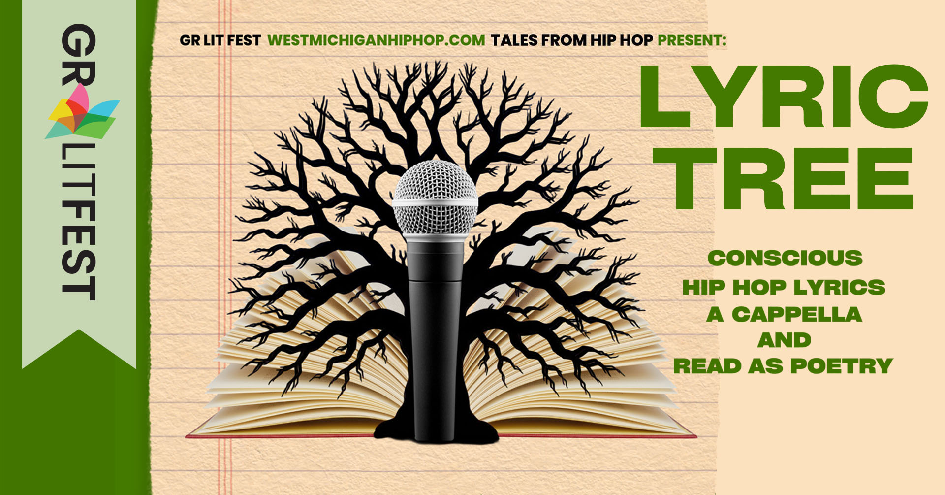 GR Lit Fest, WestMichiganHipHop.com, and Tales from Hip Hop present: Lyric Tree Conscious Hip Hop Lyrics, A Capella, and Read as Poetry A Capella Hip Hop Verses Hip Hop Verse Readings from Classic Conscious Songs Freestyle Raps (Off the Dome Flows) at the End of the Event! With a cappella verses from: Alfie Da Great ... Read more